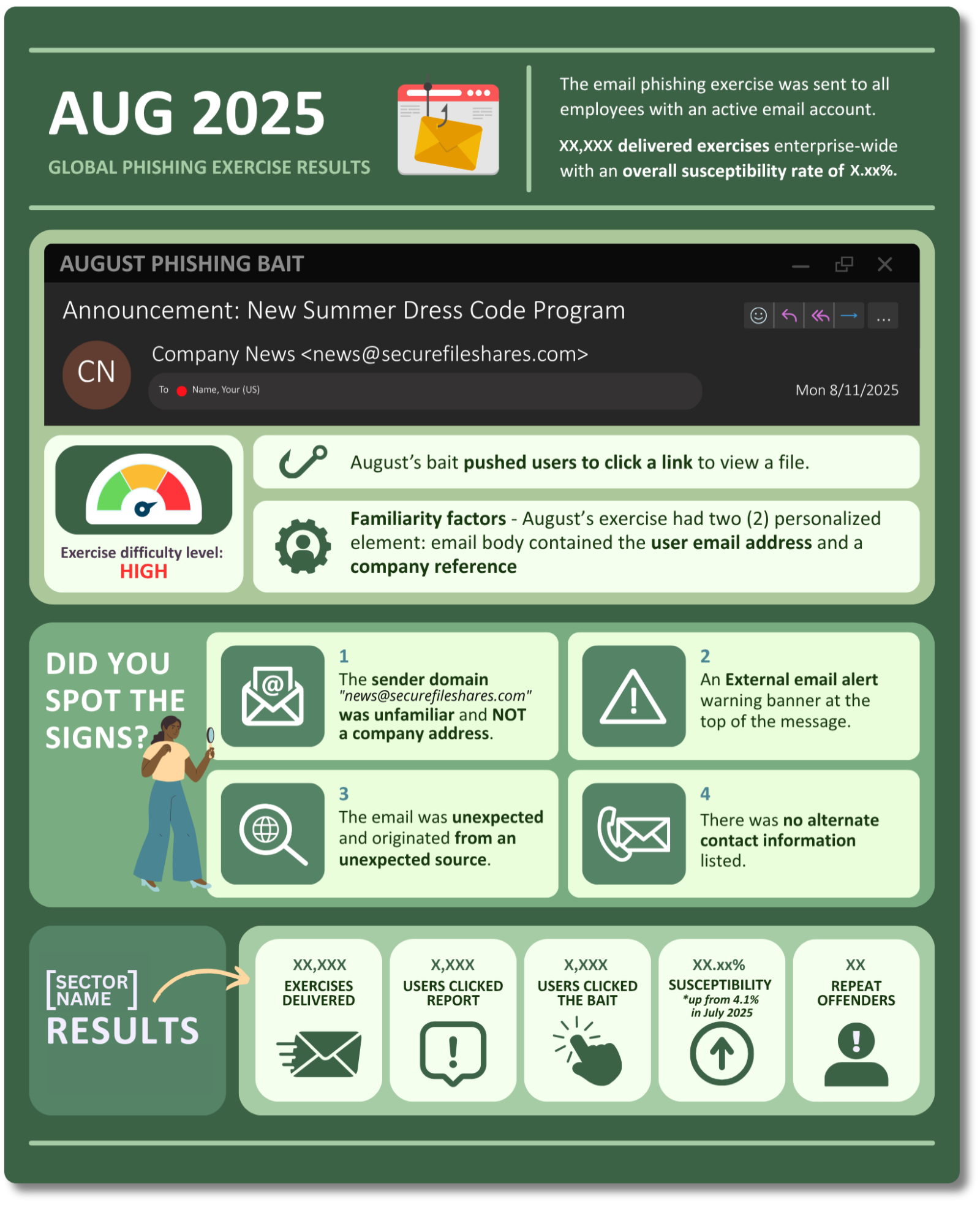 Phishing Exercise Results: Monthly Sector Infographic